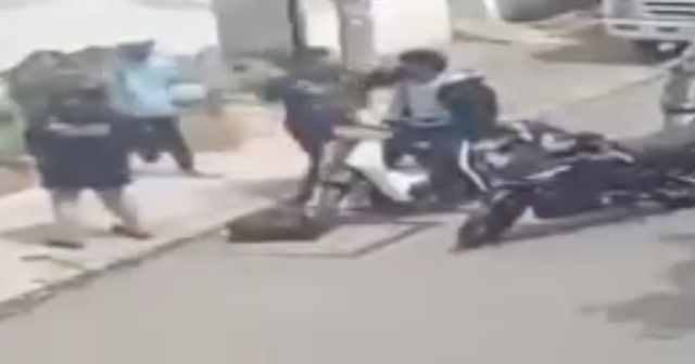 Nam thanh niên sau đó dùng mũ bảo hiểm đánh tới tấp vào mặt, đầu 2 học sinh. Khi có người can ngăn, nam thanh niên mới dừng lại lên xe rời đi.