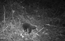 Một đứa trẻ đang cố gắng hứng những giọt nước cuối cùng.