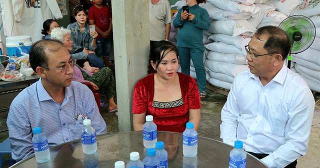 Ông Trần Chí Hùng (bìa phải), Phó Chủ tịch UBND TP Cần Thơ, thăm hỏi gia đình học sinh bị điện giật tử vong