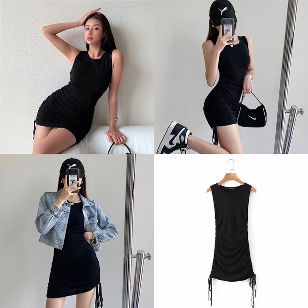 Ngoài việc có thể tuỳ chỉnh độ dài ngắn của váy bằng việc thắt dây 2 bên thì bạn còn có thể tự tin hơn phần nào vì item này sẽ giúp hack dáng giúp bạn, tăng kích cỡ vòng 1 lẫn vòng 3 lên đáng kể. Mix cùng với sneaker hay boots là bạn có 1 set đồ khoẻ khoắn còn nếu muốn điệu hơn thì hãy mix cùng giày/sandal cao gót nhé.