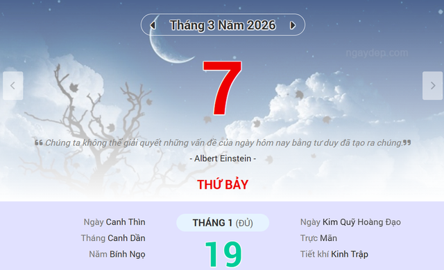 Âm lịch: Ngày 19/1/2026, ức ngày Canh Thìn, tháng Canh Dần, năm Bính Ngọ.