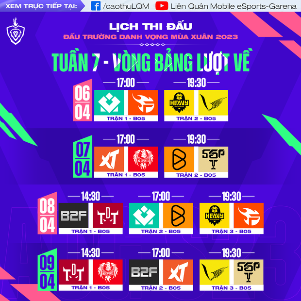 Lịch thi đấu vòng bảng Đấu Trường Danh Vọng mùa Xuân 2023