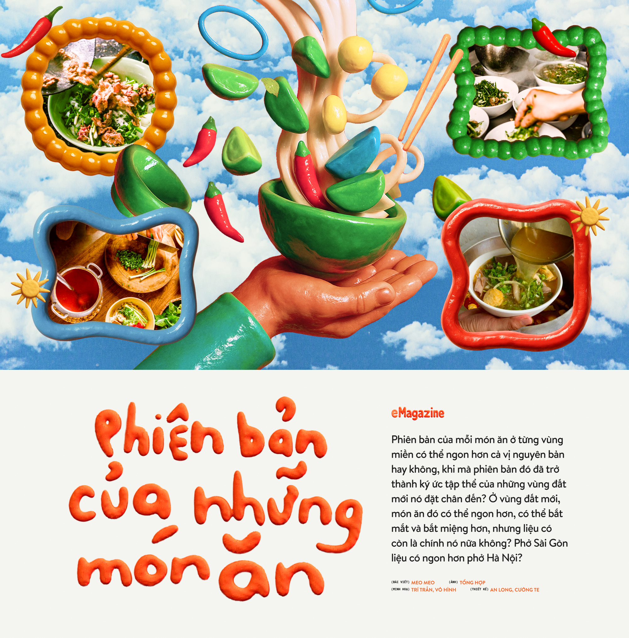Câu hỏi ở đây là: Phiên bản của mỗi món ăn ở từng vùng miền có thể ngon hơn cả vị món ăn gốc hay không, khi mà phiên bản đó đã trở thành ký ức tập thể của những vùng đất mới nó đặt chân đến? Và liệu ở vùng đất mới, món ăn đó có thể ngon hơn, có thể bắt mắt và bắt miệng hơn, nhưng liệu nó có còn là chính nó nữa hay không?
