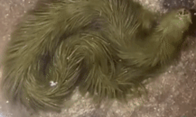 Clip sinh vật lạ phủ kín “lông” xanh rêu bơi mềm như dải lụa dưới nước. (Nguồn: Reddit)