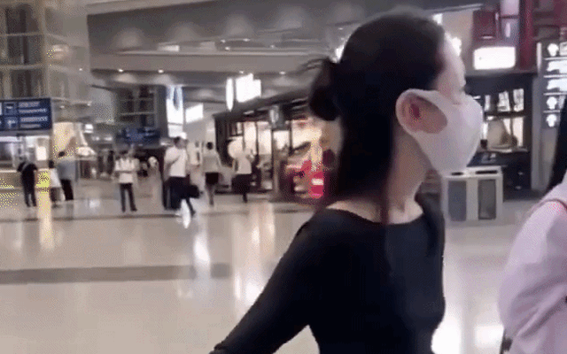 Châu Đông Vũ đeo khẩu trang kín mít và diện chiếc váy liền thân màu trắng trong màn lộ diện hồi năm 2023. Cô đi giày bệt, lộ ra phần bụng nhô lên rõ rệt. Đặc biệt, ký giả tờ 163 nhận xét, dáng đi của Châu Đông Vũ giống với 1 bà bầu. Ảnh: 163