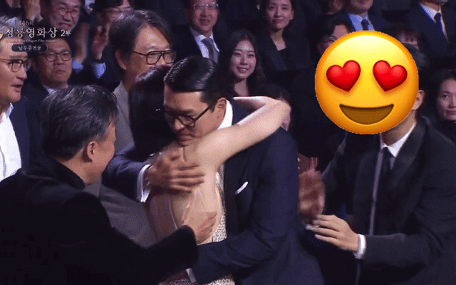 Đúng lúc cả thế giới đang "chết chìm" trong sự ngọt ngào của cặp đôi BinJin thì Park Jung Min – người ngồi ngay ghế bên cạnh cũng muốn được ôm chia vui. Anh liên tục vỗ lưng, vỗ eo Hyun Bin, "phá đám" cái ôm tình tứ tài tử này dành cho vợ, dường như muốn kéo Hyun Bin ra khỏi khoảnh khắc lãng mạn với Son Ye Jin để "độc chiếm" sự chú ý của người bạn thân. Hyun Bin vừa bất lực vừa buồn cười, cuối cùng đành phải buông vợ ra để ôm bạn diễn 1 cái. Son Ye Jin rời cái ôm của chồng với vẻ mặt không mấy cam lòng, khiến tình huống càng trở nên hài hước.