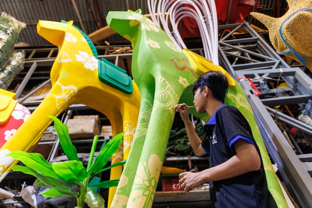 Một số đã hoàn thiện lớp sơn và chờ đóng kiện để vận chuyển ra phố đi bộ Nguyễn Huệ