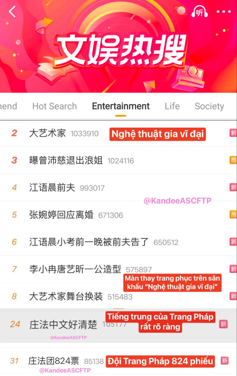 Tiết mục của Trang Pháp leo thẳng hot search ở Weibo (Ảnh: kandeeASCFTP)