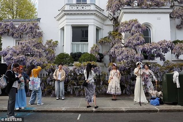 Nguyên nhân của tình trạng này đến từ sức hút của mùa hoa tử đằng nở rộ, đặc biệt tại các khu nổi tiếng như Notting Hill và Kensington, nơi có nhiều ngôi nhà sở hữu giàn hoa rực rỡ, đẹp mắt.