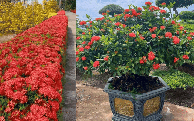 Điểm dễ nhận biết nhất của hoa trang là hoa mọc thành từng chùm tròn, dày và chắc. Mỗi bông hoa nhỏ có bốn cánh, xếp đều như hình ngôi sao, khi nở rộ tạo thành một khối màu sắc rất nổi bật. Hoa trang có nhiều màu như đỏ, cam, vàng, hồng, trong đó hoa trang đỏ và cam được trồng phổ biến nhất vì mang cảm giác ấm áp, rực rỡ, hợp không khí Tết. Cây có dạng bụi, thân gỗ nhỏ, lá xanh đậm, dày và bóng. Hoa trang khá khỏe, chịu nắng tốt, ít sâu bệnh, vì vậy rất phù hợp để trồng chậu chơi Tết trong nhà hoặc trước hiên.