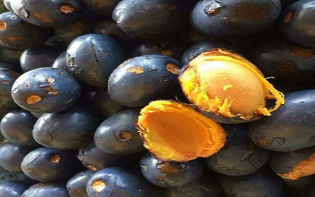 Cọ là loài cây bản địa, sinh trưởng khỏe, chịu hạn tốt, thường mọc thành từng đám trên đồi đất khô. Quả cọ có hình bầu dục, vỏ ngoài sẫm màu, bên trong là lớp thịt béo ngậy, bùi và thơm rất đặc trưng. Cọ không nên ăn sống mà phải qua chế biến, phổ biến nhất là om hoặc rang để giảm vị chát. Khi om đúng cách, lớp vỏ ngoài mềm ra, phần thịt bên trong chuyển sang màu vàng nâu óng, ăn vào vừa béo, vừa bùi, có vị ngậy rất riêng, không lẫn với bất kỳ loại quả nào khác.