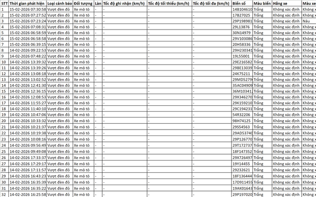 Trong ngày 15/2/2026, Cục Cảnh sát giao thông đã xác định thêm nhiều trường hợp vi phạm trật tự an toàn giao thông qua hệ thống camera A.I.