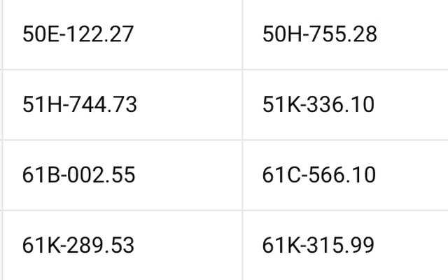 50E-122.27, 50H-755.28, 51G-963.21, 51H-744.73, 51K-336.10, 51R-401.72, 61B-002.55, 61C-566.10, 61K-182.63, 61K-289.53, 61K-315.99 và 61K-409.06.
