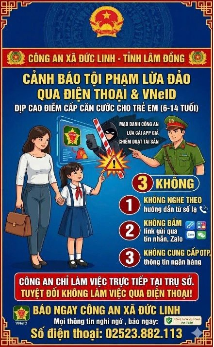Theo công an tỉnh Lâm Đồng, hiện nay, trong thời gian cao điểm triển khai cấp căn cước công dân cho trẻ em từ 6 đến 14 tuổi, các đối tượng lừa đảo đã và đang lợi dụng tình hình để thực hiện nhiều thủ đoạn tinh vi nhằm chiếm đoạt tài sản của người dân.