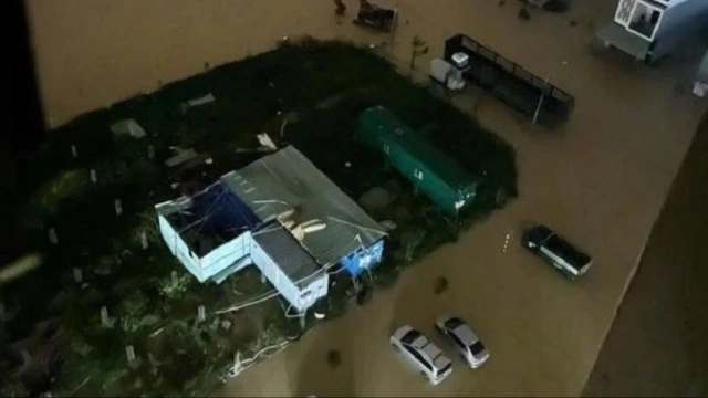 Nhà và ô tô ở Quy Nhơn ngập trong nước, tối 18/11. Ảnh: Người dân cung cấp.