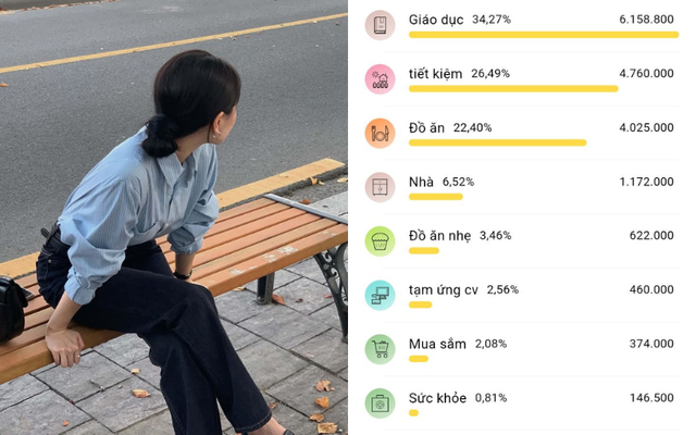 "Cứ sau ngày 25 là mình bắt đầu thấy oải vì phải tìm cách xoay tiền chi tiêu. Lương tháng 12 triệu, có tháng ít hơn, 1 mình nuôi 3 con ở Hà Nội, nhiều khi tự thấy nể bản thân. Phần hơn 4 triệu tiết kiệm kia chỉ là lấy lương xong, mình để riêng ra để hạn chế chi tiêu giai đoạn đầu tháng, rồi cuối tháng lại lấy ra đóng tiền học cho con hoặc trang trải.
