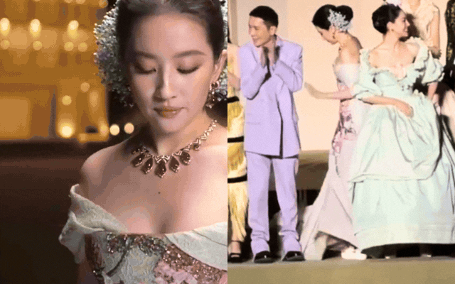 Đến khi máy ảnh ngừng bấm, nữ diễn viên mới nhẹ nhàng chuyển chiếc vòng cho trợ lý, khi người này dìu cô lên bục. Tất cả trôi qua êm như một phân cảnh được biên đạo sẵn. Cách xử lý khéo léo và điềm tĩnh của "thần tiên tỷ tỷ" ngay lập tức netizen trầm trồ.