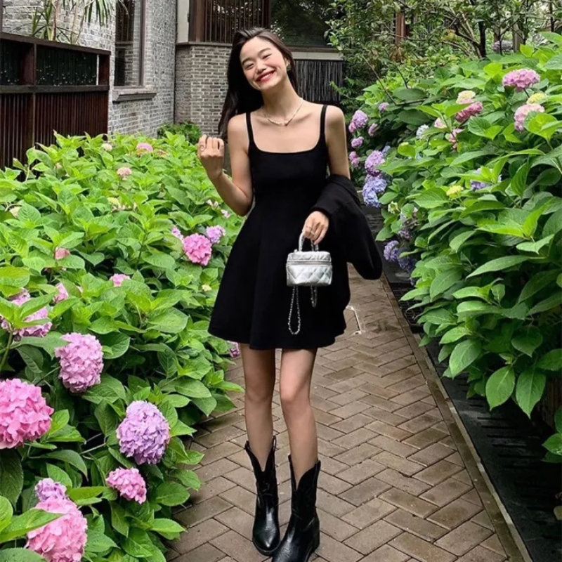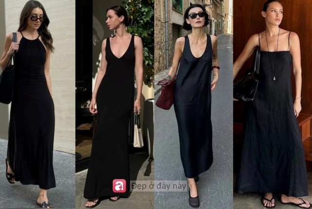 Nhìn vào loạt outfit trên, có thể thấy điểm chung rất rõ: tất cả đều xoay quanh những thiết kế váy đen tối giản – từ dáng suông hai dây, cổ vuông, cổ yếm cho đến những chiếc váy chữ A nhẹ nhàng.