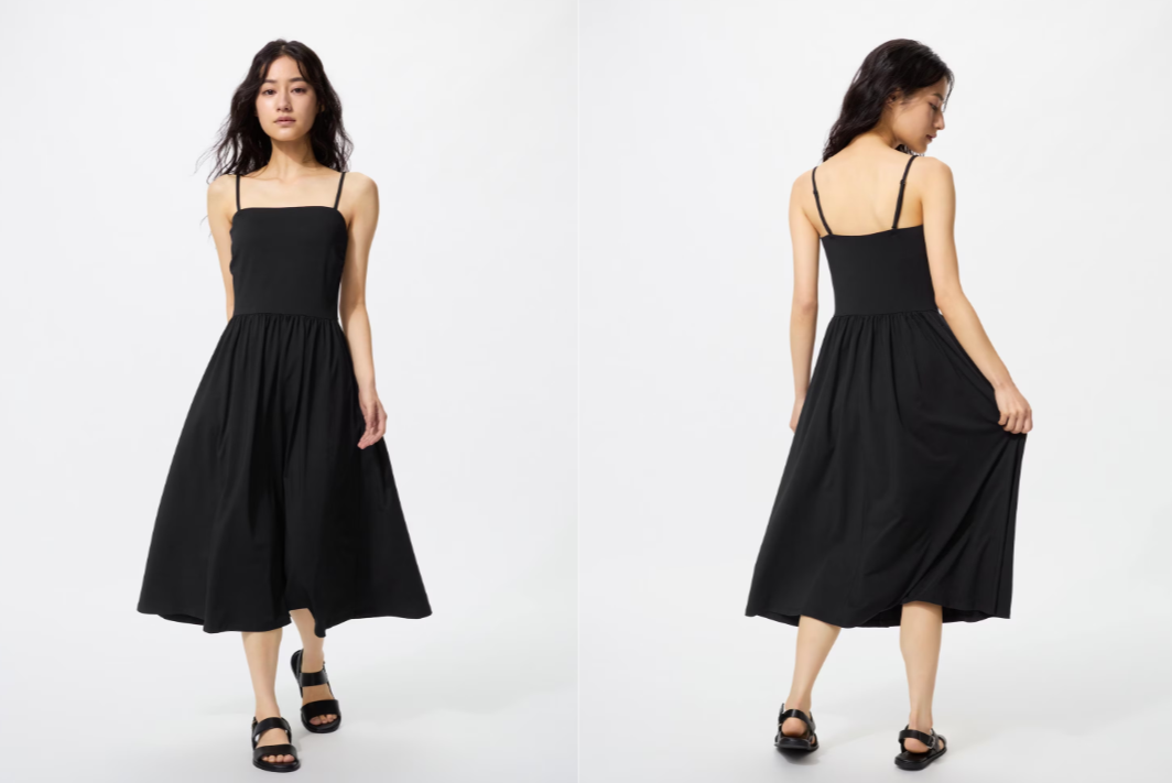 Một trong những ưu điểm lớn nhất của váy đen là khả năng “hack dáng” tự nhiên. Những thiết kế ôm nhẹ hoặc suông dài giúp kéo dài tỉ lệ cơ thể, trong khi các chi tiết như xẻ tà, cổ chữ V hay cổ yếm lại khéo léo tôn lên đường nét vai – cổ – eo. Nhờ đó, dù bạn theo đuổi phong cách nữ tính, thanh lịch hay phóng khoáng, váy đen đều có thể thích nghi một cách hoàn hảo.