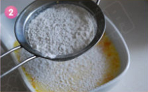 - Rùi dùng rây, rây bột đều lên hỗn hộp và cho bơ vào trộn đều ha! |