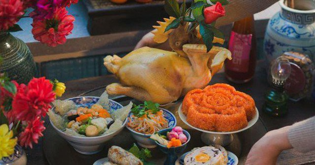 Mâm cúng Phật (Lễ chay): Gồm hương, hoa, trà, quả (ngũ quả), xôi gấc (tượng trưng cho may mắn), chè trôi nước (cầu mong vạn sự viên mãn) và các món rau củ thanh tịnh. Tuyệt đối không để đồ mặn lên bàn thờ Phật.