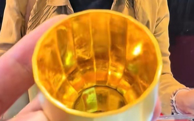 Thật đáng kinh ngạc, sau khi kiểm tra, chiếc cốc có độ tinh khiết vàng đến 99,9%.