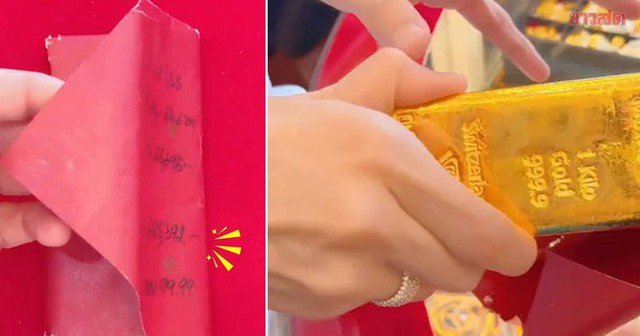 Nó đã được giữ trong 13 năm. Khách hàng mua thỏi vàng này vào năm 2012, nặng 1kg, với giá 1,68 triệu baht (hơn 1,3 tỷ đồng). Clip hiện vẫn đang gây xôn xao mạng xã hội.