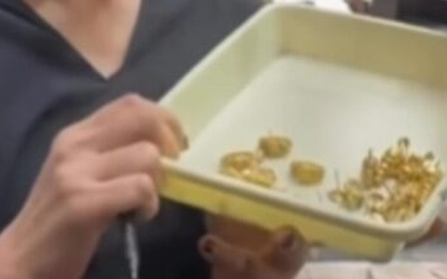 Đoạn video được chủ tiệm vàng chia sẻ trên mạng xã hội cho thấy một nhân viên cửa hàng vàng đang cẩn thận cân và kiểm tra từng món trang sức bằng vàng, tính toán giá cả dựa trên giá vàng của ngày hôm đó, tổng doanh thu đạt 1,8 triệu baht.