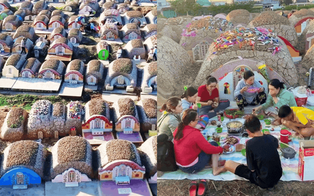 Khoảng sân lót gạch tàu hay tráng xi măng rộng rãi phía trước bia mộ không phải xây ra để bỏ trống. Đó là nơi diễn ra một trong những nét văn hóa đặc sắc nhất của người Hoa miền Tây dịp Thanh Minh: Cúng kiếng và ăn uống ngay tại mộ.