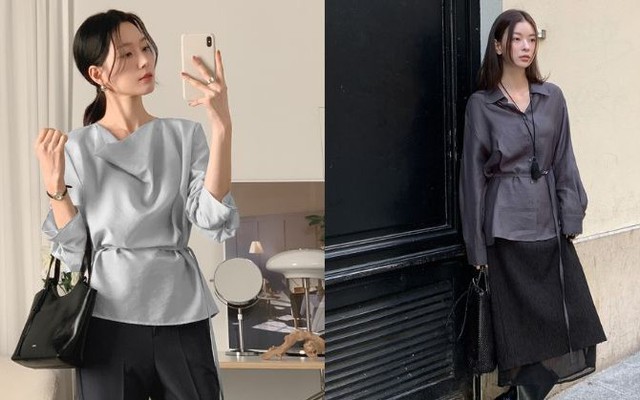 Về kiểu dáng, áo nhấn eo cũng cực kỳ đa dạng. Đó có thể là sơ mi dáng cổ điển với đường chiết tinh tế ở phần eo, blouse tay phồng nhấn eo mang hơi hướng vintage, hay áo khoác mỏng với đai thắt nhẹ giúp tạo phom dáng gọn gàng. Thậm chí, nhiều mẫu áo còn kết hợp nhấn eo bằng đường xếp ly, peplum hoặc dây thắt, mang lại cảm giác mềm mại và thời trang hơn so với những kiểu áo dáng suông truyền thống.