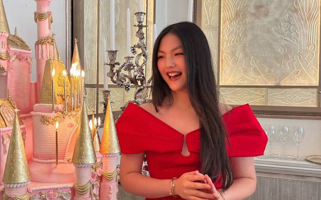 Vương Thi Linh chọn sắc đỏ làm tông chủ đạo cho chiếc váy lộ vai, phần dây nơ nhỏ và chi tiết chiết eo tôn vóc dáng thiếu nữ, hòa cùng phông nền hồng phấn của bánh kem và hoa trang trí. Sự kết hợp đỏ hồng vốn dễ bị sến nhờ cách xử lý chất liệu lại trở nên dịu mắt và tươi tắn. Đây là lựa chọn khéo léo cho dịp sinh nhật, vừa giữ được nét lễ nghi của một buổi mừng tuổi vừa phù hợp tâm trạng ngọt ngào của tuổi trăng tròn.