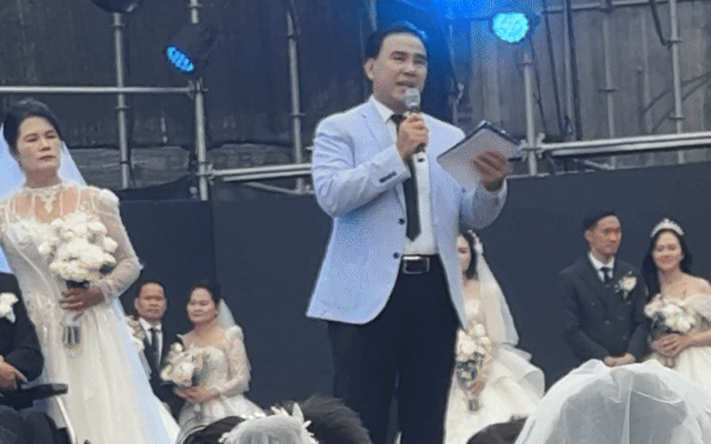 Clip: MC Quyền Linh nghẹn ngào đến lạc giọng vì xúc động trước hạnh phúc của một cặp đôi