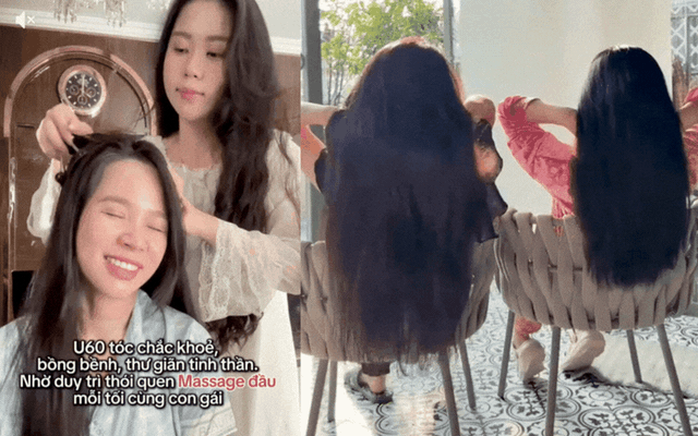 Bên cạnh đó, bà duy trì thói quen massage da đầu mỗi tối. Chỉ cần dùng đầu ngón tay xoa nhẹ nhàng toàn bộ da đầu trong 5-10 phút để kích thích lưu thông máu, giúp nang tóc nhận đủ dưỡng chất. Đây cũng là cách giảm căng thẳng, một trong những nguyên nhân khiến tóc nhanh bạc và gãy rụng nhiều.