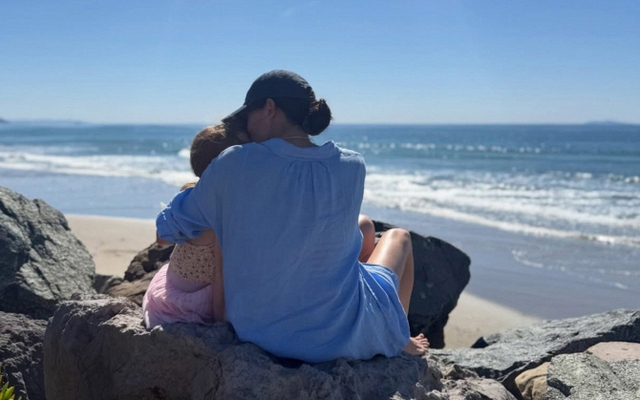 Khoảnh khắc hai mẹ con bình yên trước biển và lời nhắn gửi xốn xang