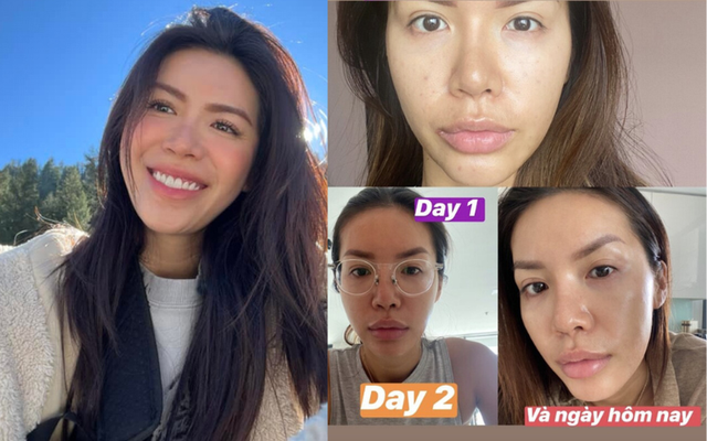 Cận cảnh làn da tươi tắn, mịn màng của Minh Tú sau 3 ngày uống nước ép. (Nguồn: Instagram)