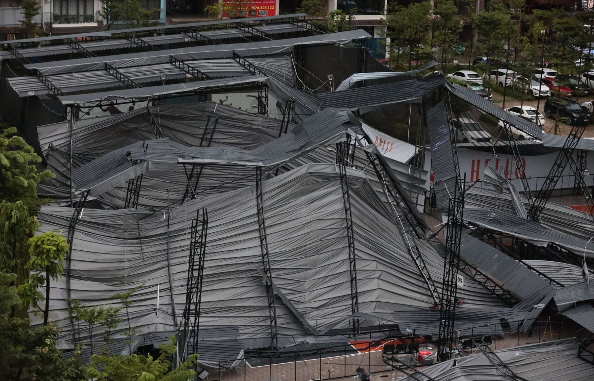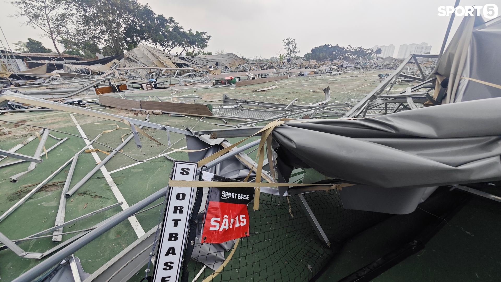 Một sân Pickleball tại Hà Nội bị sập do mưa bão