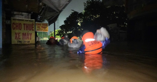 Trong ngày và đêm 27-10, hàng ngàn cán bộ, chiến sĩ Công an TP Huế vẫn bám địa bàn, căng mình cứu dân khỏi vùng ngập sâu.