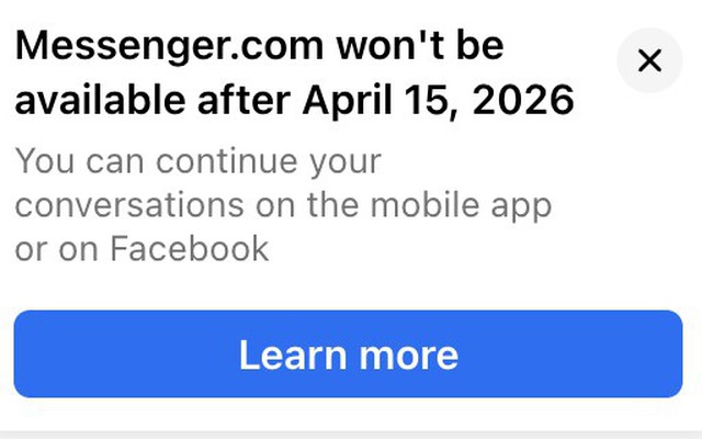 Sau ngày 15/4/2026, trang web messenger.com sẽ dừng hoạt động
