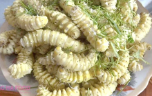 Thế nhưng bên cạnh những mẻ tằm vàng óng ấy, còn có một loài tằm khác khiến người lần đầu nhìn phải giật mình: tằm sắn - thứ đặc sản "độc lạ" mà ai yếu vía nhìn vào cũng rợn người, nhưng đã thử rồi thì lại khó mà dừng đũa.