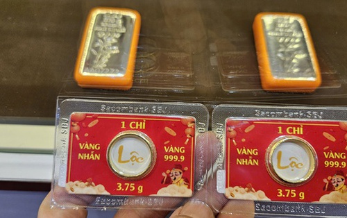Mỗi lượng vàng miếng SJC, vàng nhẫn giảm 2 triệu đồng/lượng theo đà đi xuống của giá thế giới.