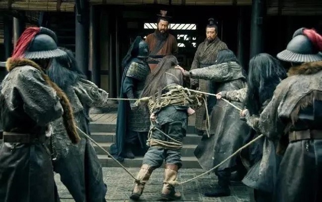 Lã Bố bị trói và áp giải tới gặp Tào Tháo.