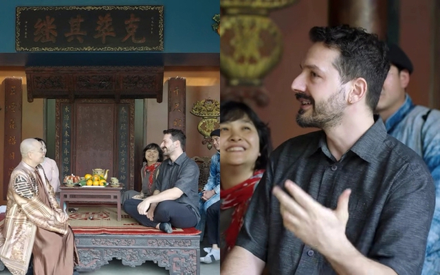 Biết đây là khách quý, nghệ sĩ Xuân Hinh tiếp đón khá long trọng. Anh mặc áo dài truyền thống phong cách Bắc Bộ, đích thân trò chuyện và dẫn anh Evangelos đi ngắm nhìn mọi ngóc ngách trong bảo tàng.