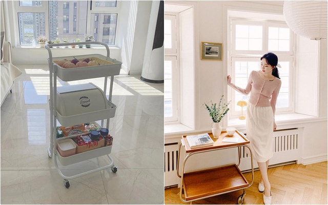 Vậy nên tôi vừa từ bỏ chiếc bàn trà cồng kềnh bằng một chiếc bàn phụ nhỏ có bánh xe có thể gấp lại hoặc đặt. Không gian phòng khách sẽ ngay lập tức trở nên rộng hơn. Trải một tấm thảm lên đó, trẻ em có thể chơi theo ý muốn và nó cũng dễ vệ sinh.