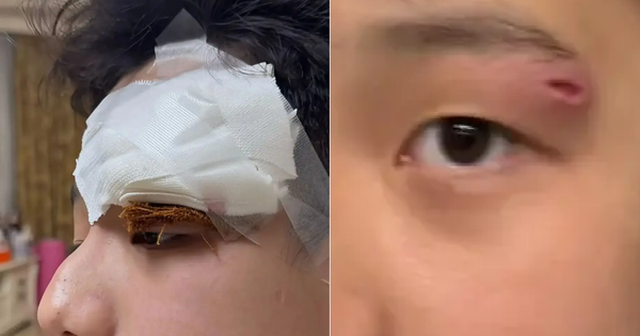 Vài ngày trước, con trai cô xuất hiện tình trạng sưng đỏ, đau ở mí mắt trái. Nghĩ chỉ là một nốt viêm thông thường, Guan Ling dùng kim chích nhẹ để “xả mủ” với hy vọng giảm sưng. Không ngờ, vùng mí mắt nhanh chóng sưng to hơn, đau dữ dội. Khi đưa con đi khám, bé phải chuyển từ khoa Da liễu sang Ngoại tổng quát và cuối cùng buộc phải phẫu thuật rạch dẫn lưu, khâu 4 mũi.