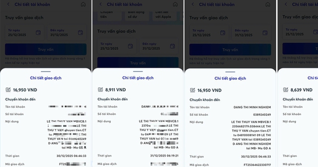 Lợi dụng mối quan hệ kinh doanh hải sản từ trước với chị N., khi chuyển thanh toán đơn hàng mua hải sản, bà Vân thao tác chuyển khoản "lập lờ". Ví dụ, số tiền phải thanh toán là 9.034.000 đồng, nhưng bà Vân chỉ thực hiện chuyển 9.034 đồng. Hay đơn hàng 11.278.000 đồng nhưng bà Vân chỉ chuyển 11.278 đồng.