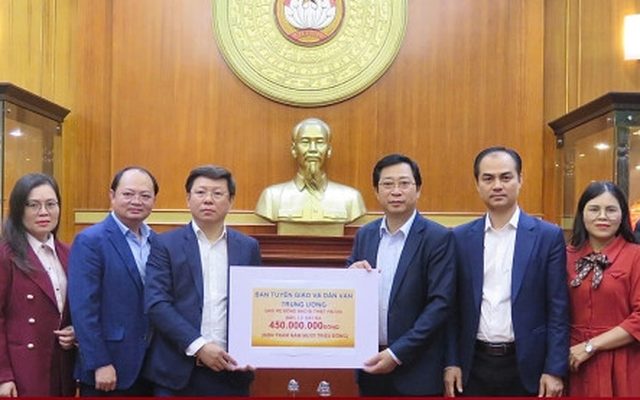 Phó Trưởng Ban Tuyên giáo và Dân vận Trung ương Trần Thanh Lâm trao số tiền ủng hộ đồng bào khắc phục hậu quả mưa lũ tới Ban Vận động cứu trợ Trung ương.