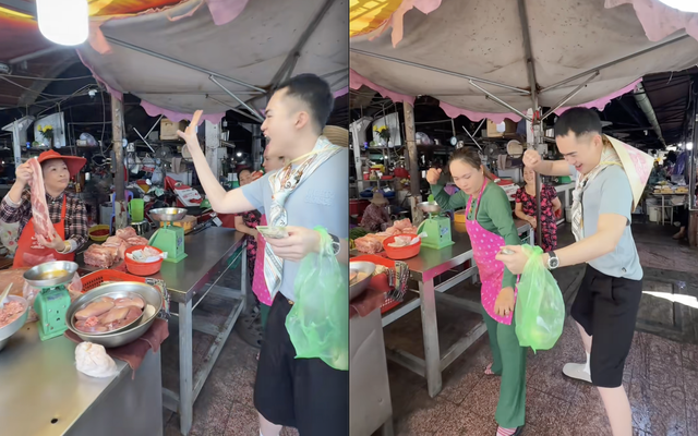 Thế nhưng, đoạn khiến người xem thích thú nhất lại nằm ở khoảnh khắc Tina đi mua thịt. Khi anh đang lựa phần thịt để kho, một chị bán hàng gần đó bất ngờ đề nghị trả tiền thay cho anh. Tina thì nhất quyết muốn tự thanh toán. Thế là giữa không gian ồn ào của khu chợ, hai người bắt đầu giành nhau trả tiền. Chị 1 câu "để chị trả cho" thì em lại 1 câu "để em tự trả". Cảnh tượng vừa vui vừa "khó đỡ": Tina cười, chị tiểu thương cũng cười, khiến ai đi ngang qua cũng phải bật cười theo.