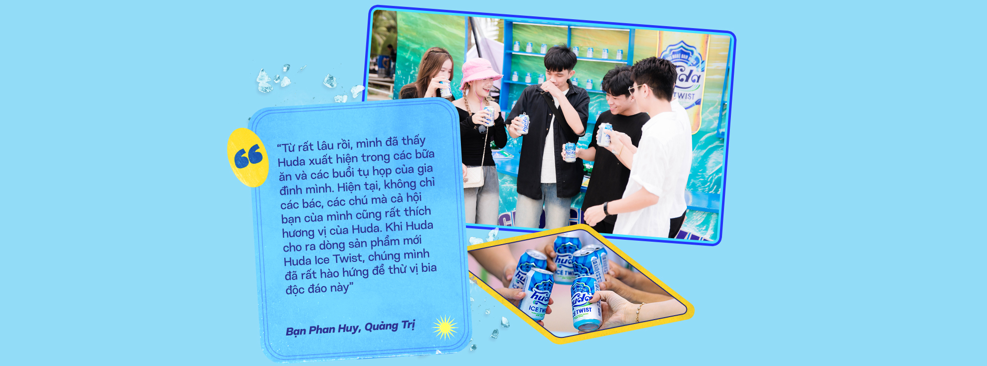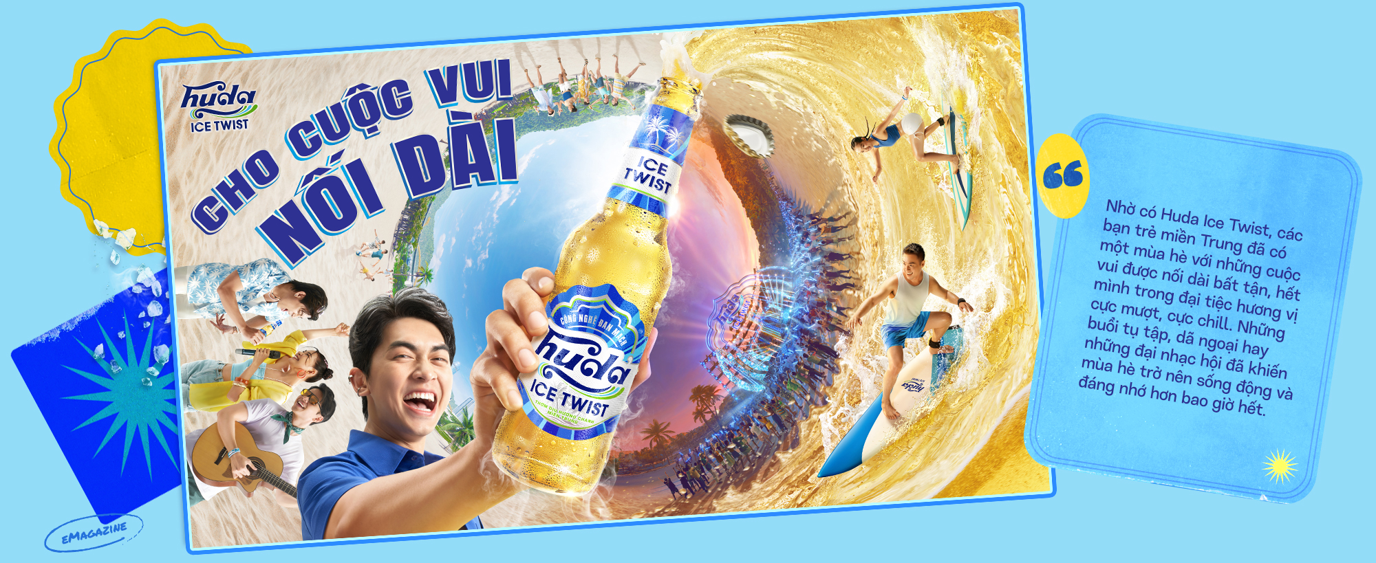 Mùa hè sẽ vẫn còn đó và những bữa tiệc đang chờ đón phía trước. Hãy cùng nhau nâng ly, chào đón những trải nghiệm mới. Dù ở đâu hay bất kỳ khoảnh khắc nào, Huda Ice Twist vẫn sẽ tiếp tục là người bạn “cạ cứng” của các bạn trẻ miền Trung, góp phần tạo nên những dấu ấn tuổi trẻ rực rỡ và nối dài những niềm vui bất tận. Cùng chờ đón những hoạt động cuồng nhiệt tiếp theo của Huda Ice Twist nhé!