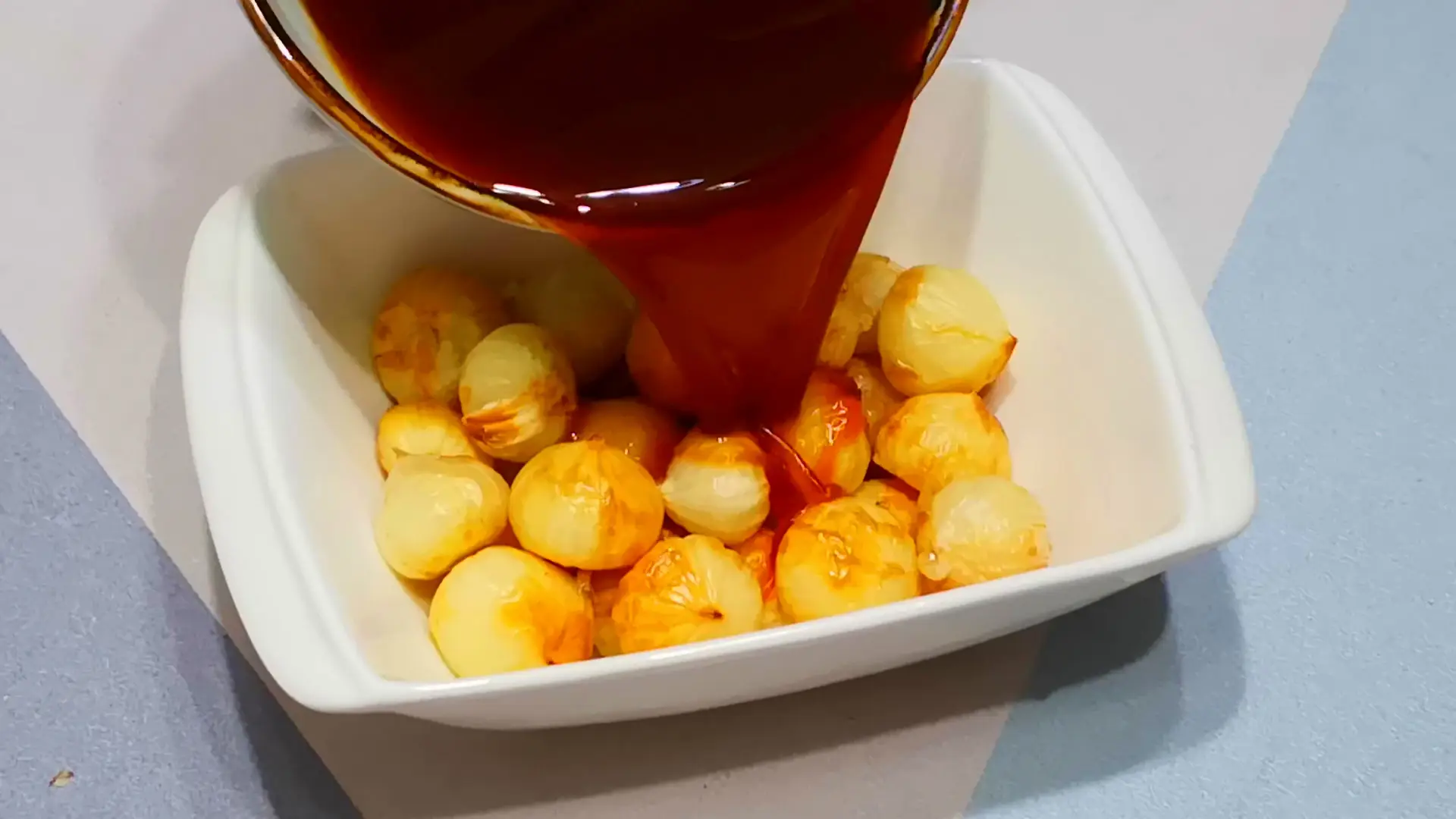 Làm nước sốt: Trộn 1 thìa tương cà, 4 thìa đường, một chút nước tương, giấm gạo, 1 thìa muối, 1 thìa dầu hào và một ít nước lọc. Khuấy đều.
