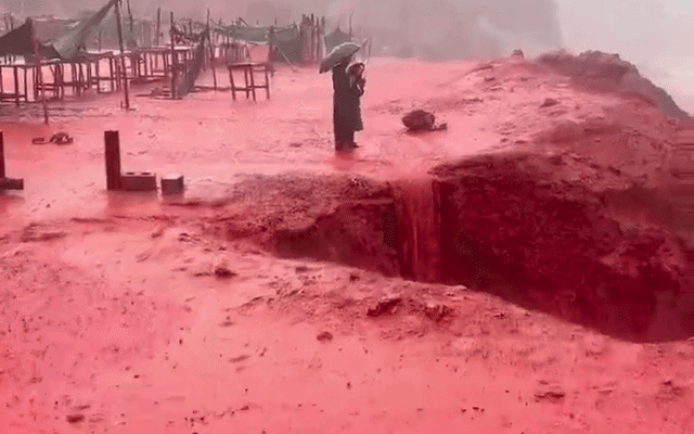 Cảnh tượng này giống hệt một “biển máu” khổng lồ. Nhiều người không khỏi rùng mình khi chứng kiến dòng nước đỏ au cuồn cuộn đổ ra đại dương, tạo nên khung cảnh vừa đẹp đến choáng ngợp, vừa ám ảnh đến khó tin.